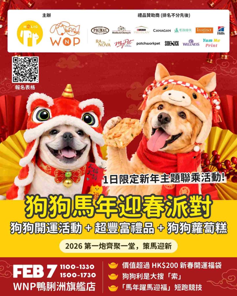 PetPetHolic 將會聯乘Whiskers N Paws 舉辦陣仗鼎盛嘅毛孩馬年迎春活動!雲集近20個品牌,過百份新春禮品🎁 包括寵物車、寵物床、寵物保健品等你嚟拎🤩每位狗狗入場都可以獲得價值超過$200嘅新春福袋,到時會有嘢玩、有嘢食,絕對係毛孩界嘅新春必去寵物好去處嘅盛事呀!🐶🐎